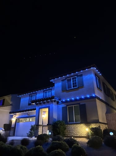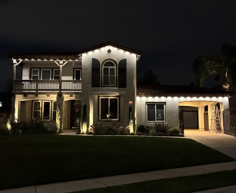 We specialize in large-scale rooflines and complex elevations, installing lighting in a way that remains discreet during the day and refined at night. Tracks are mounted with careful spacing and alignment to maintain symmetry and minimize visual footprint.